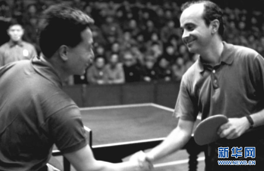 Photo prise le 15 avril 1971. Le Chinois Yang Ruihua et l'américain Dick Miles.