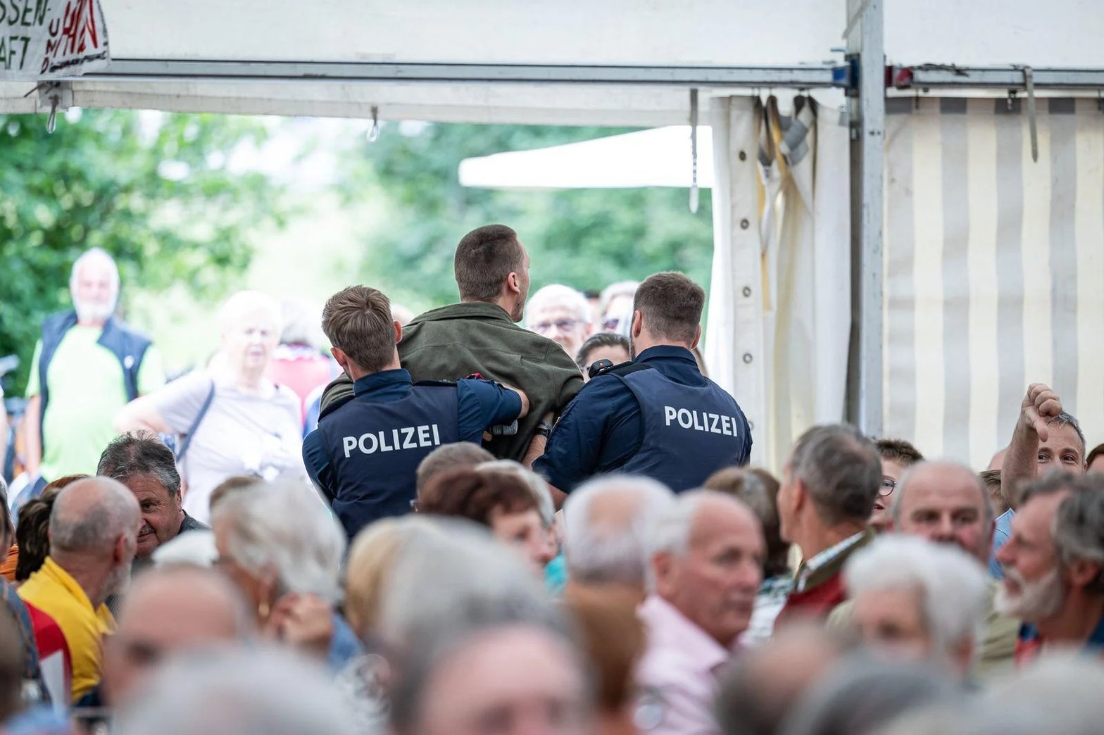 Julian Schütter is a former professional alpine skier and a climate activist from Austria. With Letzte Generation, he has participated in a number of protests that involve interrupting events, usually when a politician or official is giving a speech, by climbing on stage and talking about the need to act against climate change.